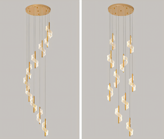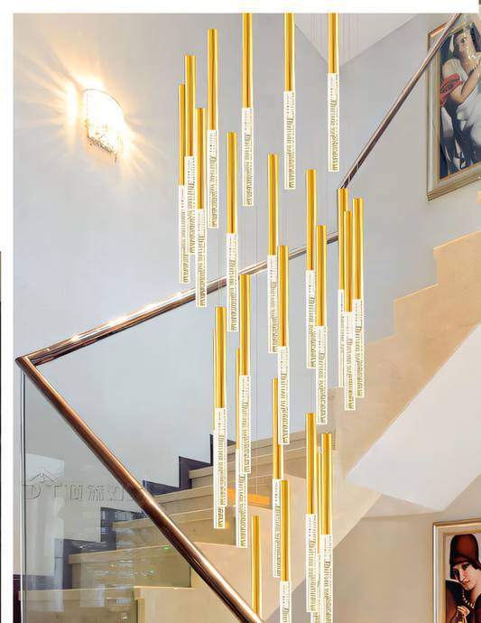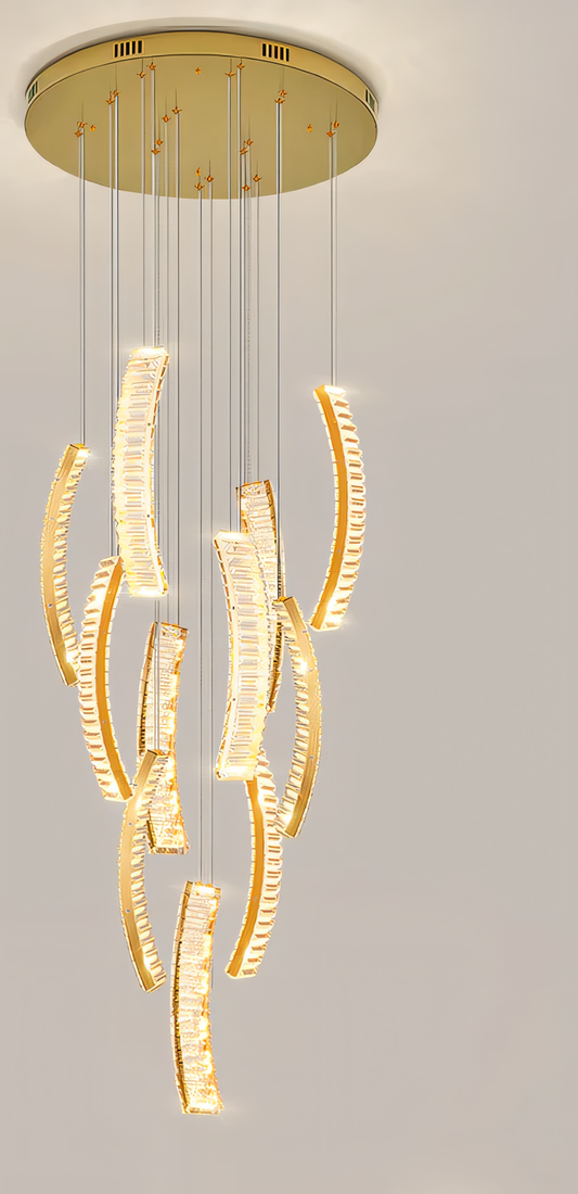 12 -Light LED Gold Long Crystal Double Height Stair Chandelier