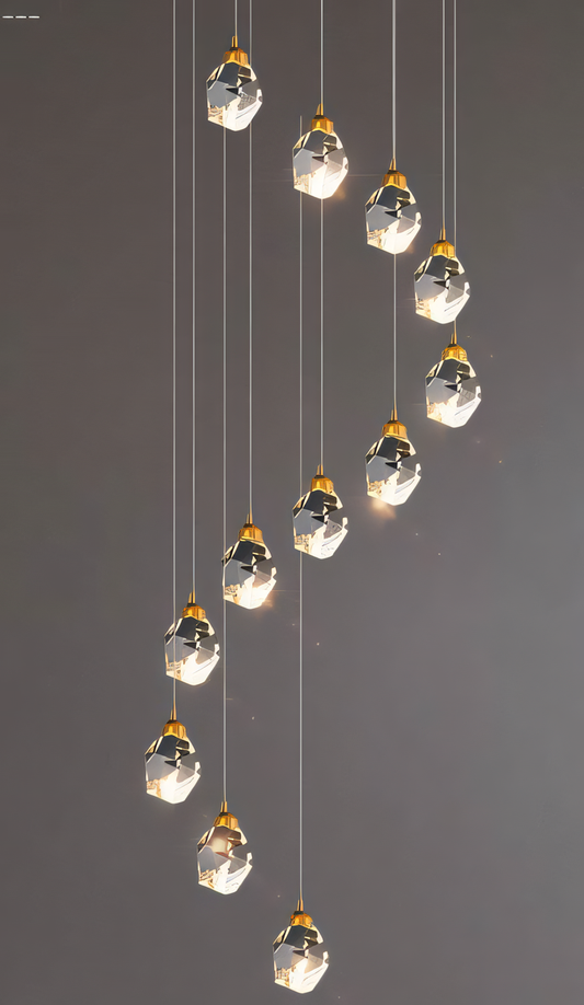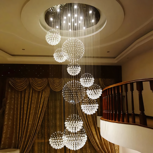10 Light-Frosted Glass Double Height Stair Chandelier