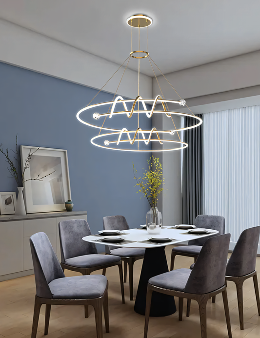 2 Layer Curl Rings Modern Gold LED Chandelier Hanging Suspension Lamp