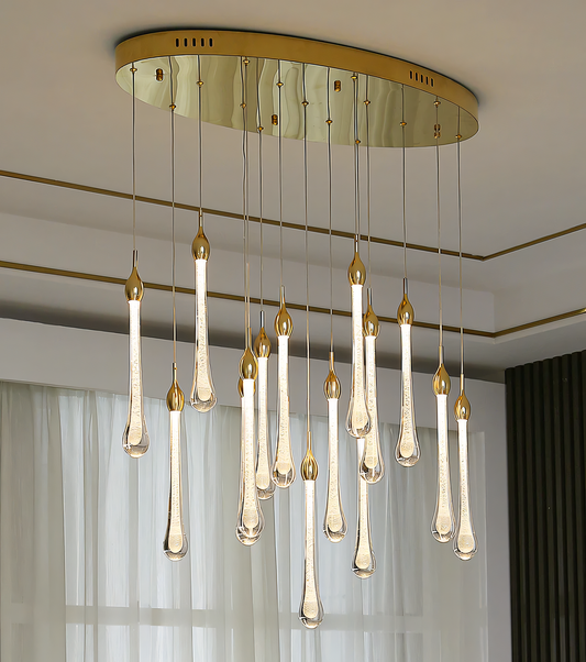 12-Light LED Sturdy Glass Gold Double Height Long Chandelier