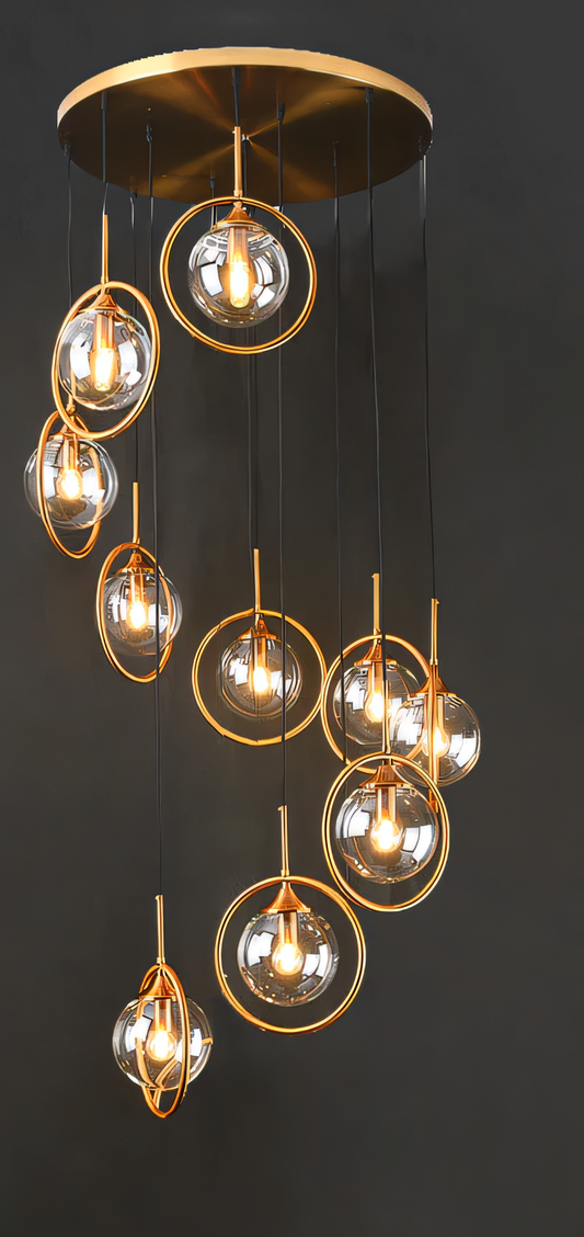 10 Light LED Amber Glass Double Height Stair Chandelier