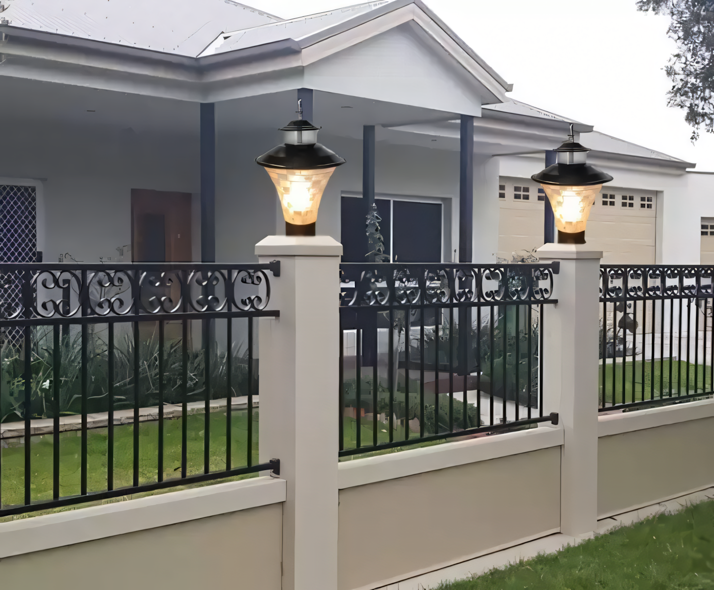 For gates with prominent posts, our post-top lights create a striking visual impact. These fixtures sit atop your gate posts, providing 360-degree illumination and a polished, finished look to your entrance.