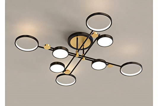 8 Light Black Gold Body LED Chandelier Ring for Dining Living Room Office Lamp
