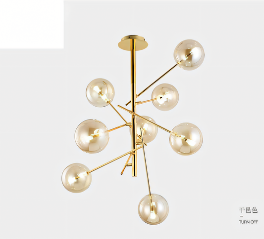 8 Light Gold Amber Glass Long Chandelier Ceiling Lights Hanging